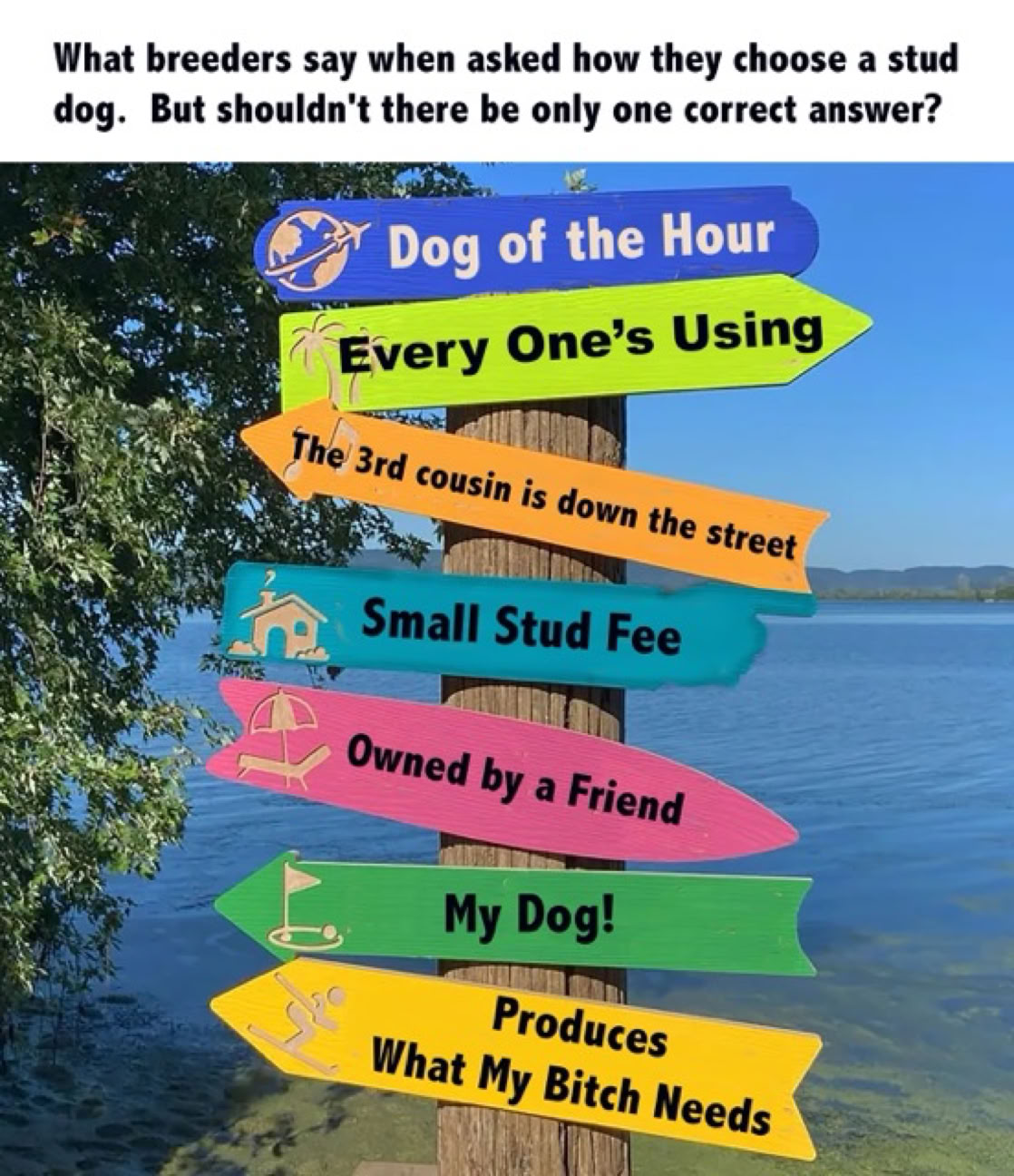 Should you be lucky enough to have purchased this puppy who is A+ in quality, that is also blessed with great producing ability, what makes you think that any and every bitch you purchase to mate to him, despite her own quality, will nick? How many bitches will you have to purchase and breed to him before you find the offspring that will then send you on your way?