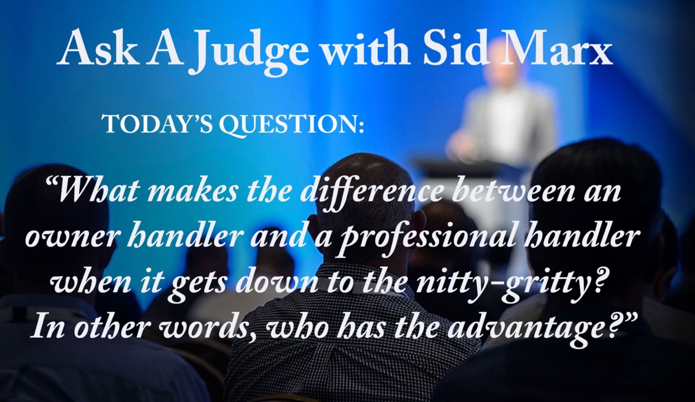 I have been in this community for more than sixty-three years, and throughout all that time there have been judges who could be called “handler-judges” and there were others. Even as a professional handler, there are occasions when it seems to matter at which level of a professional handler you are. I started – like everyone – as an owner-handler, became a professional handler, and then returned to being an owner-handler when I became a judge. When I was exhibiting, I recognized this occasional inequity, and adjusted my entries accordingly.