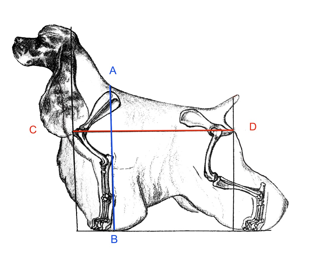 Often you will hear breeders say that a particular dog is “up on leg.” This is not referring to how tall a dog is, but a reference to the correct proportions of height and length. Likewise a dog who is called “long and low” is lower in height at the shoulder in proportion to its length .