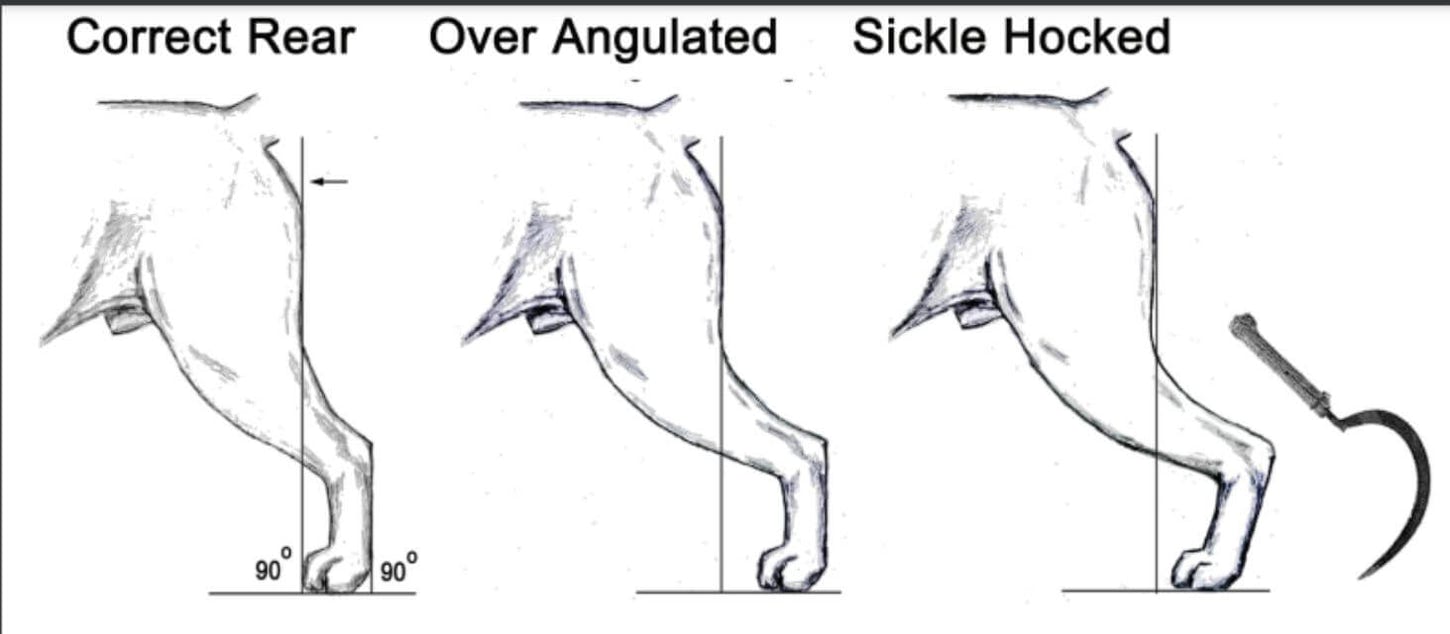 So, looking beyond the angles of the stifle and hock is important for assessing the true angulation of a dog’s rear!