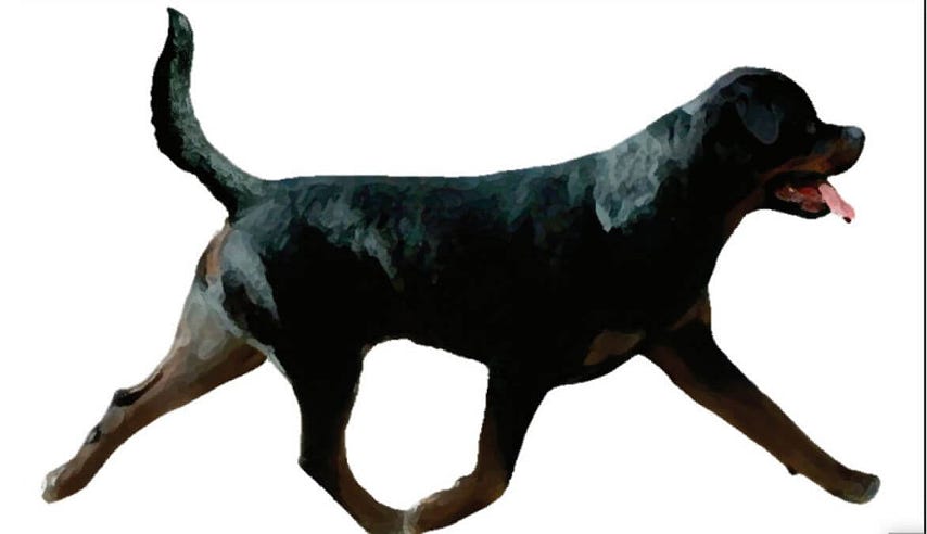 I will assume that the reader already knows the difference between a gallop, pace, and trot, and that the Rottweiler’s primary mode of travel is as a trotter. The trot is a very efficient endurance gait used by coyotes, wolves, and other wild canines to travel vast distances without exerting too much energy. It is a ground-covering gait that animals use to keep moving for hours and is the typical gait of herding breeds. So, we will assess the efficiency of our Rottweiler’s rear assembly at the trot, their most productive gait.